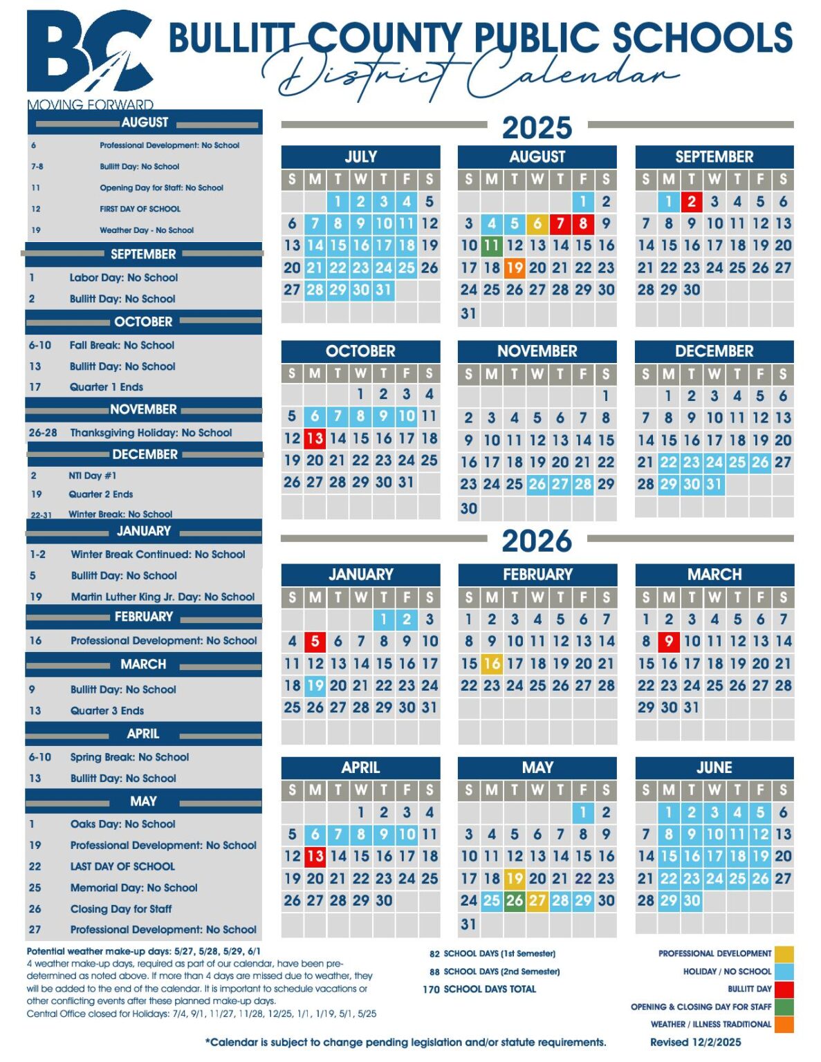 Bullitt County School Calendar 2022 2025 Schoolcalendars net