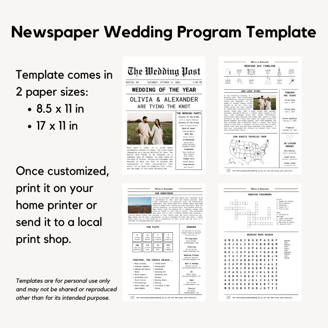 Wedding Newspaper Program Template Wedding Timeline Wedding