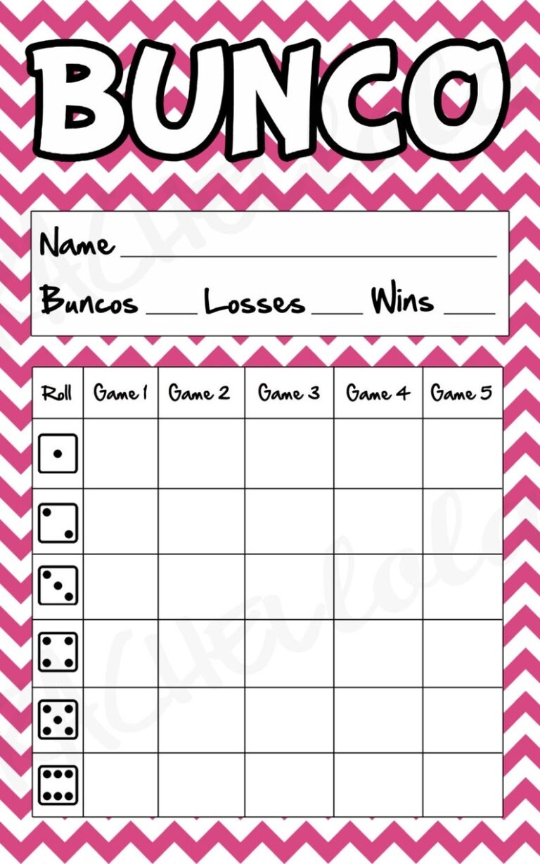 Bunco Score Sheet Free Printable