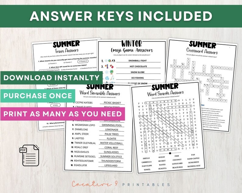 Summer Game Bundle Fun Printable Summertime Trivia With Answers Great