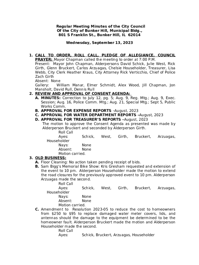 Of the City of Bunker Hill Municipal Bldg Doc Template pdfFiller