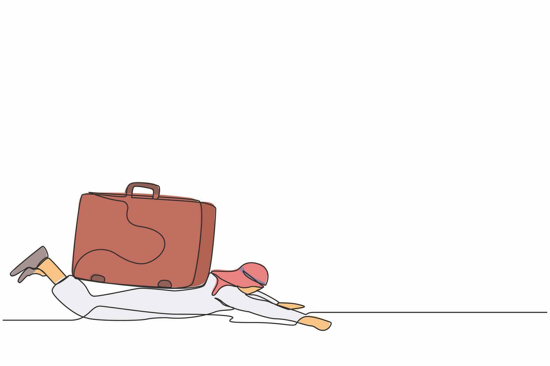 Continuous one line drawing Arabian businessman under heavy briefcase
