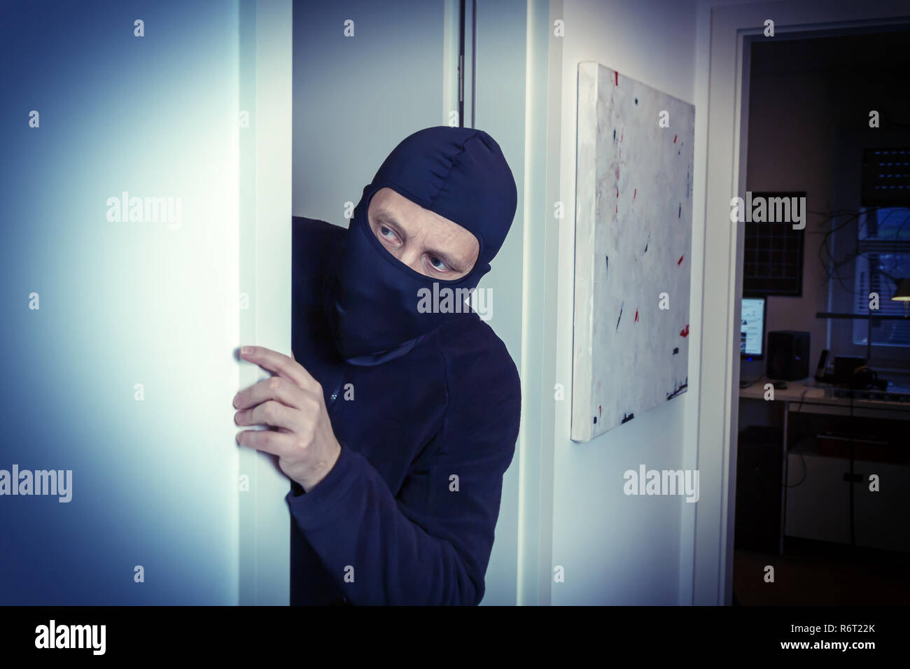 Burglar Wearing Balaclava Mask at Crime Scene Stock Image Image of