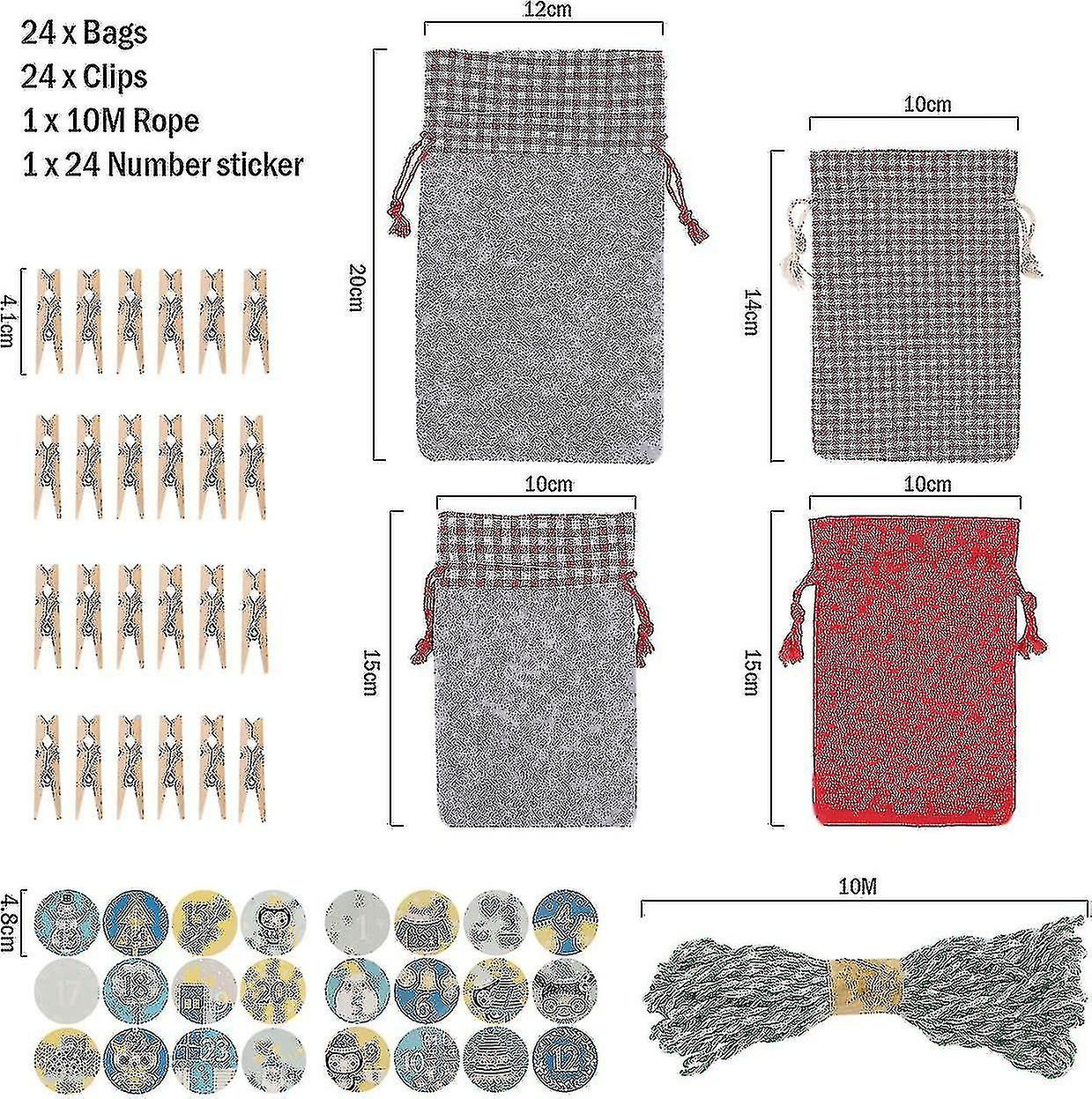 24pcs Christmas Advent Calendar Bags Burlap Drawst Grandado