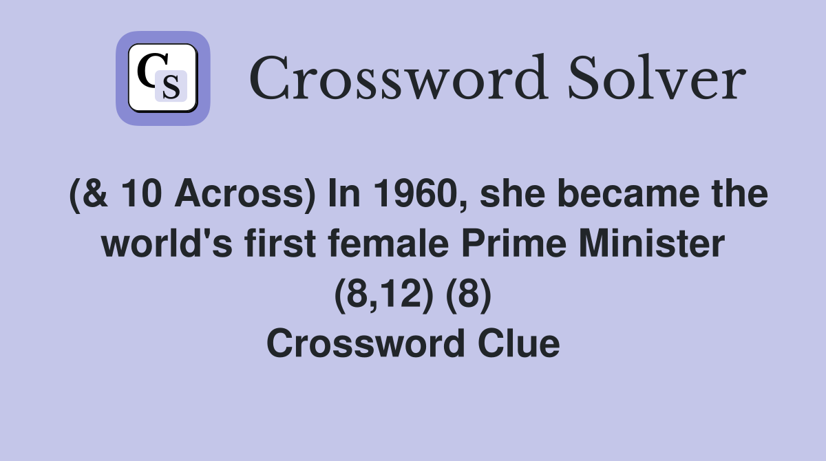 ( 10 Across) In 1960 she became the world s first female Prime