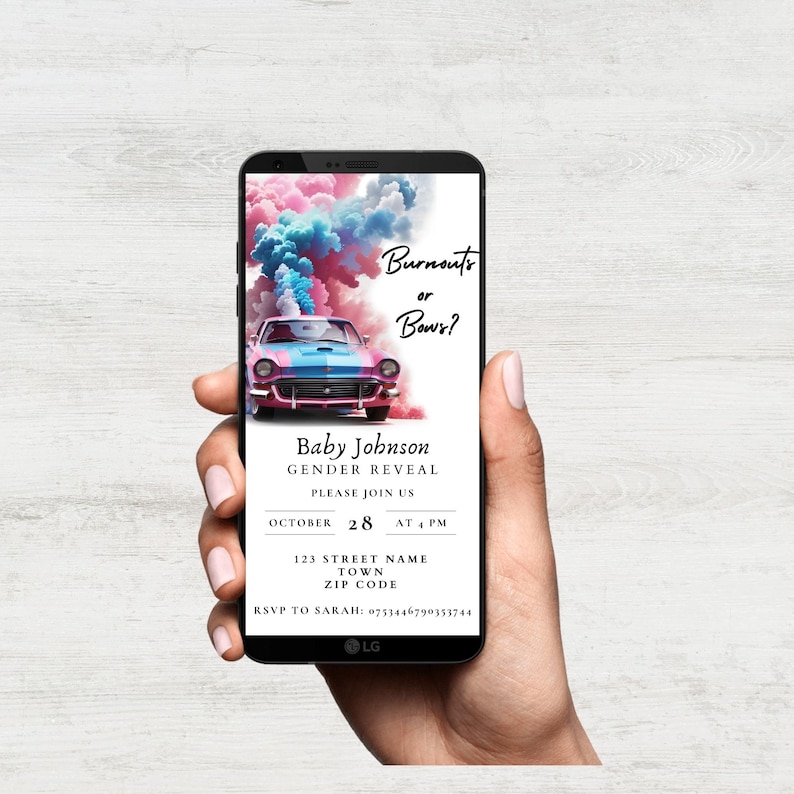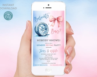 Burnouts or Bows Gender Reveal Invitation Digital Download Invitation