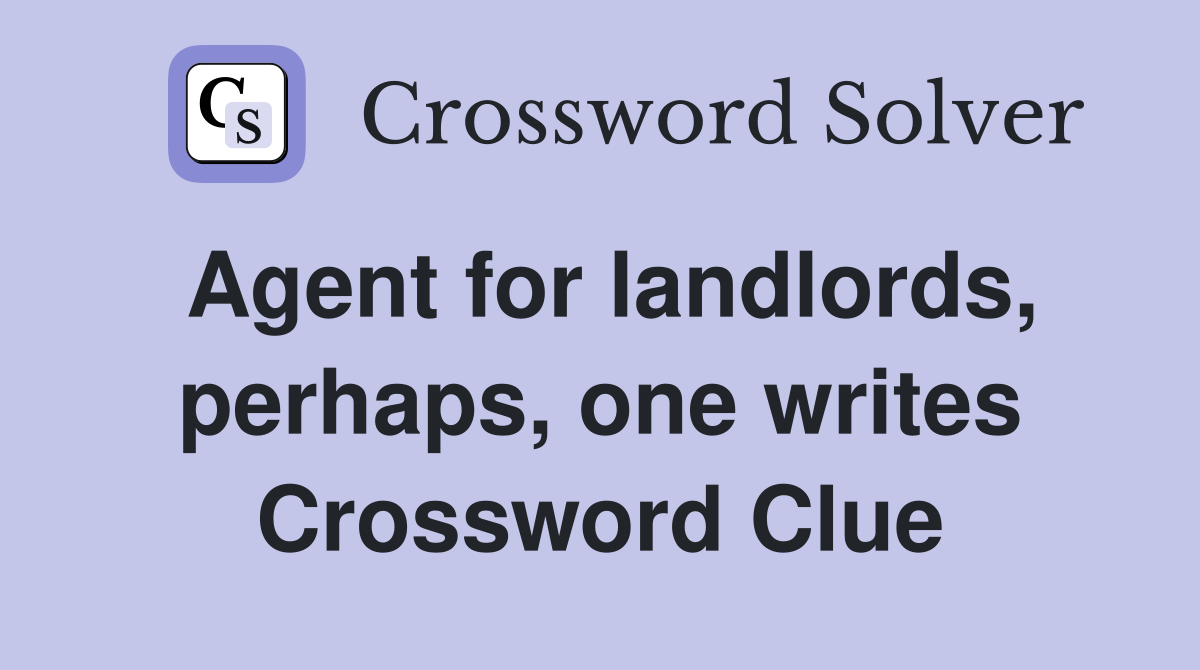 Agent for landlords perhaps one writes Crossword Clue Answers