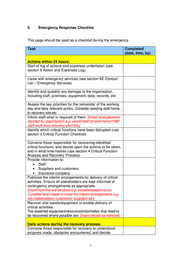 √ Free Printable Business Continuity Plan Checklist Template