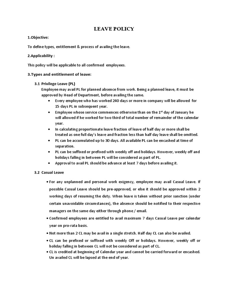 13 Leave Policy Templates Free PDF Word Format Download Free