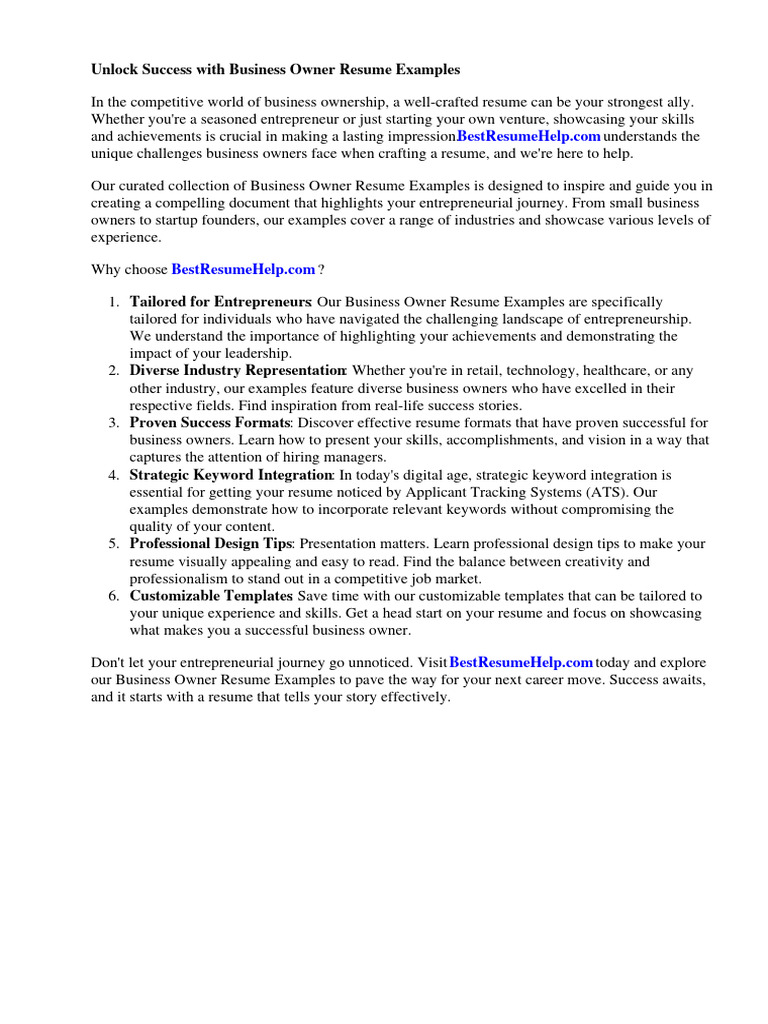 Business owner resume samples template guide Artofit