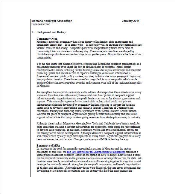 Non Profit Business Plan Template Free