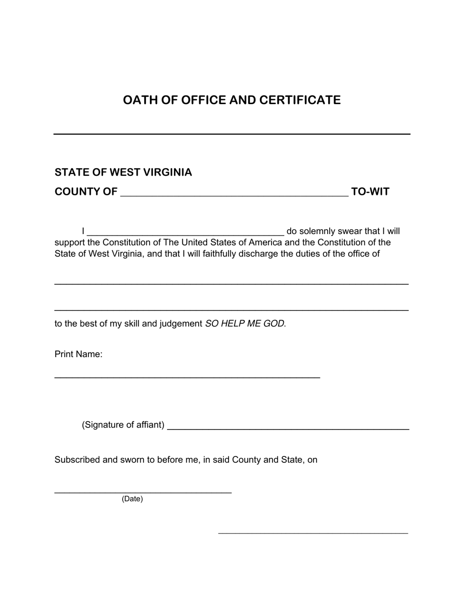 West Virginia Oath of Office and Certificate Fill Out Sign Online