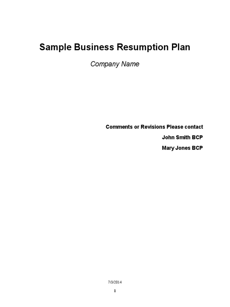 Business Resumption Plan Template