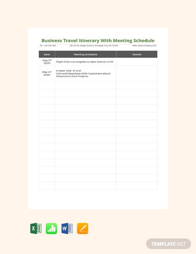 18 Business Travel Itinerary Template in Excel Google Docs Word
