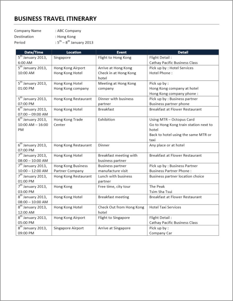 Here are some of the images for Business Travel Itinerary Template that we found in our website database.