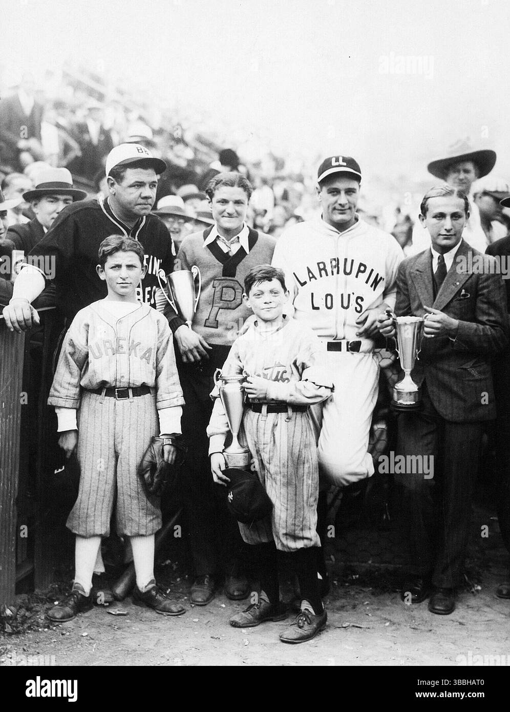 Ruth and Lou Gehrig with fans at a Barnstorming Tour 1927