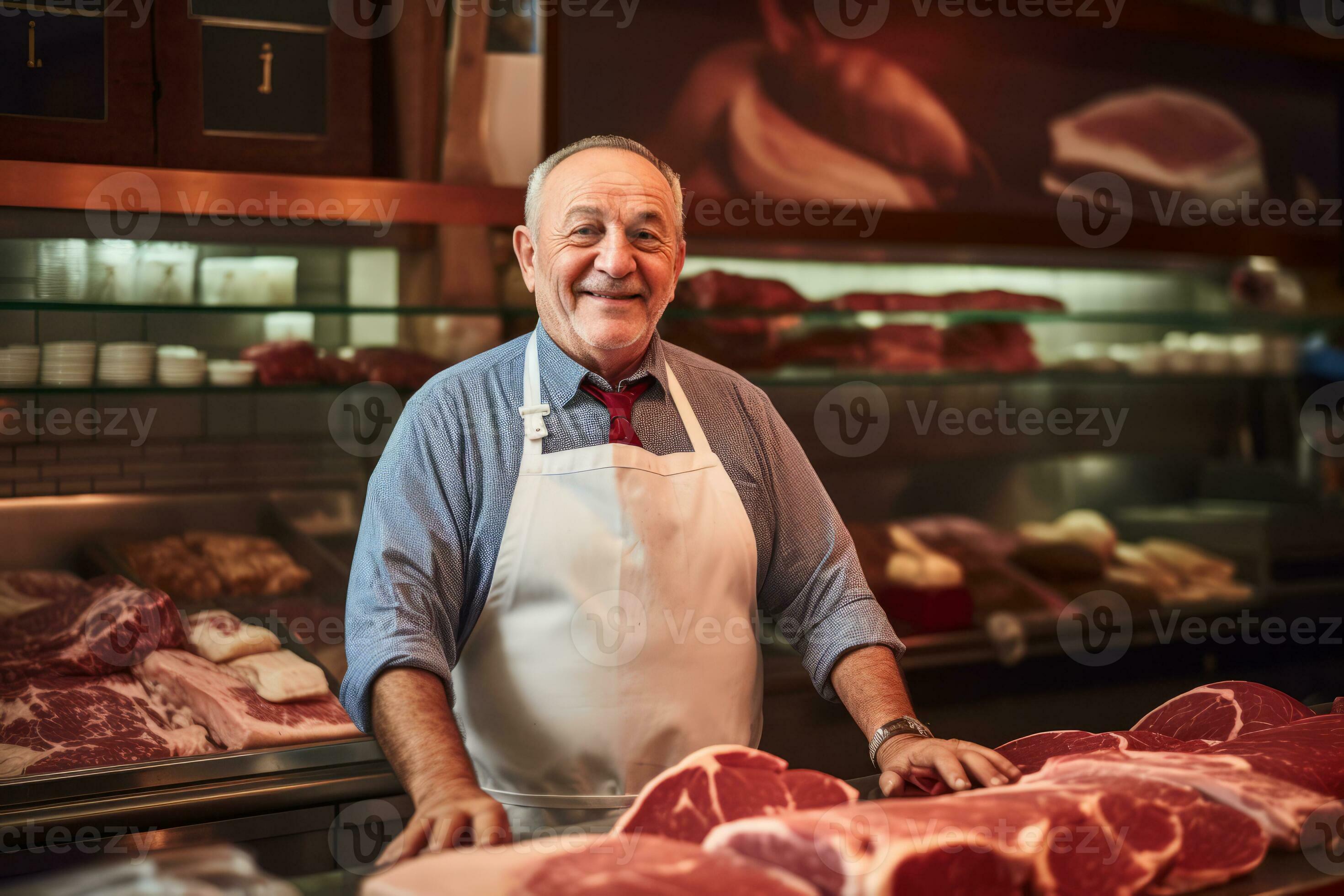 Premium AI Image a butcher in a traditional butcher shop expertly