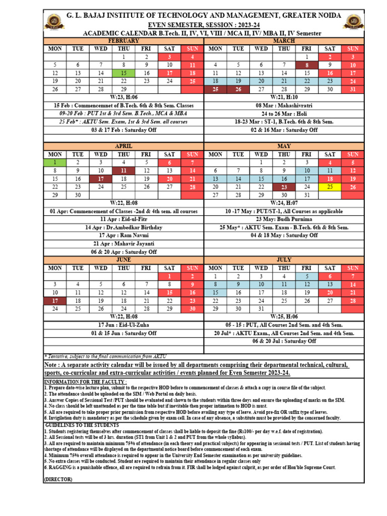 Final Academic Calendar Even 2023 24 PDF Academic Term
