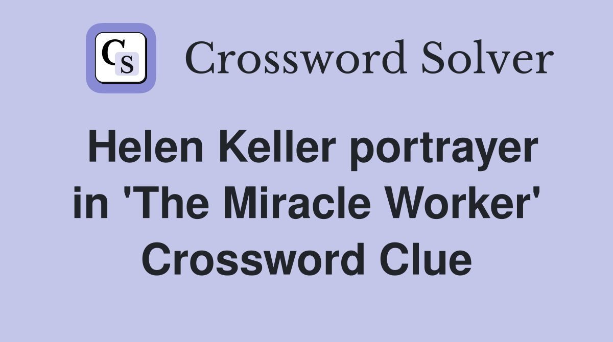 Helen Keller portrayer in The Miracle Worker Crossword Clue Answers