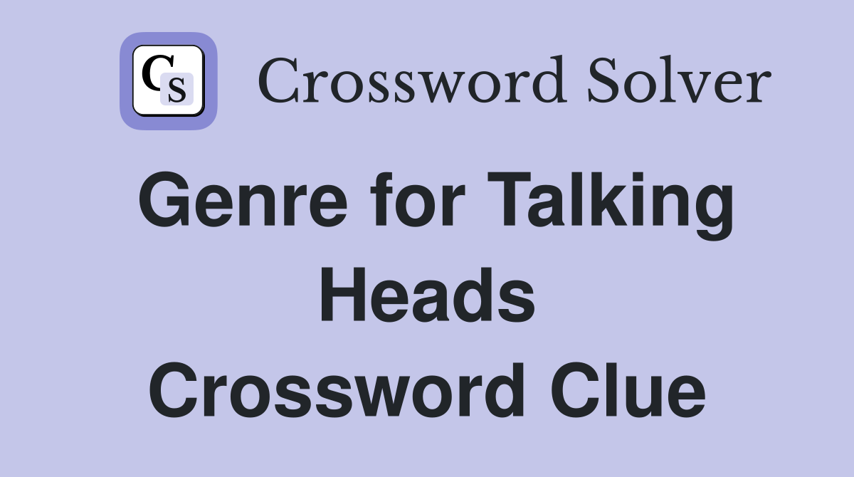 Genre for Talking Heads Crossword Clue Answers Crossword Solver