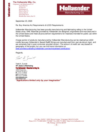 LEED/Buy American Certification Architectural Handrail by Hollaender