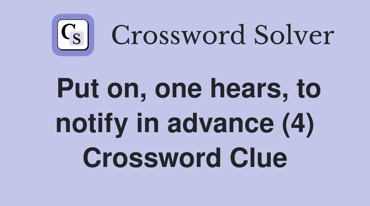 Put on one hears to notify in advance (4) Crossword Clue Answers