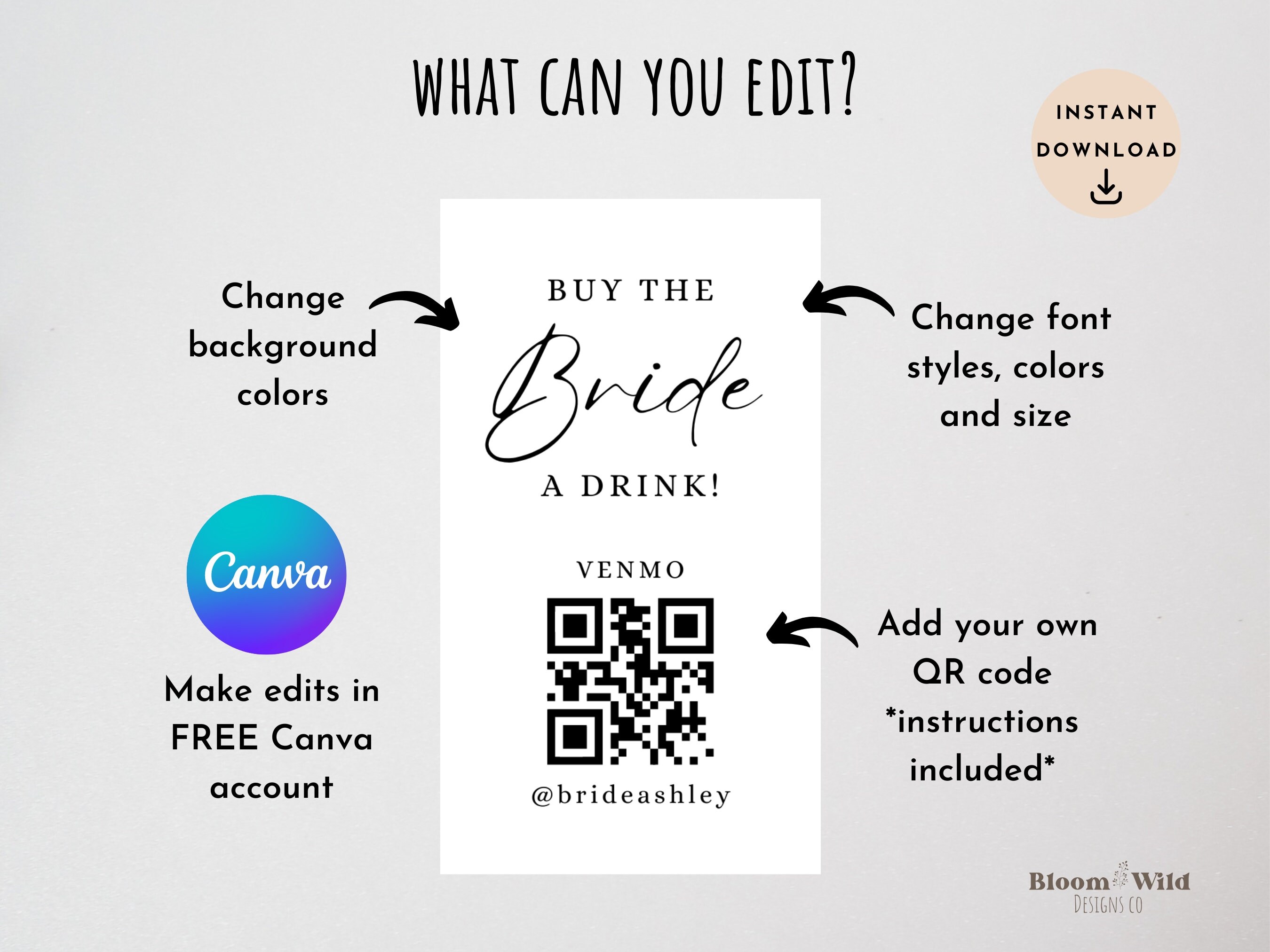 Minimalist Buy the Bride a Drink Template Venmo Bachelorette Canva QR