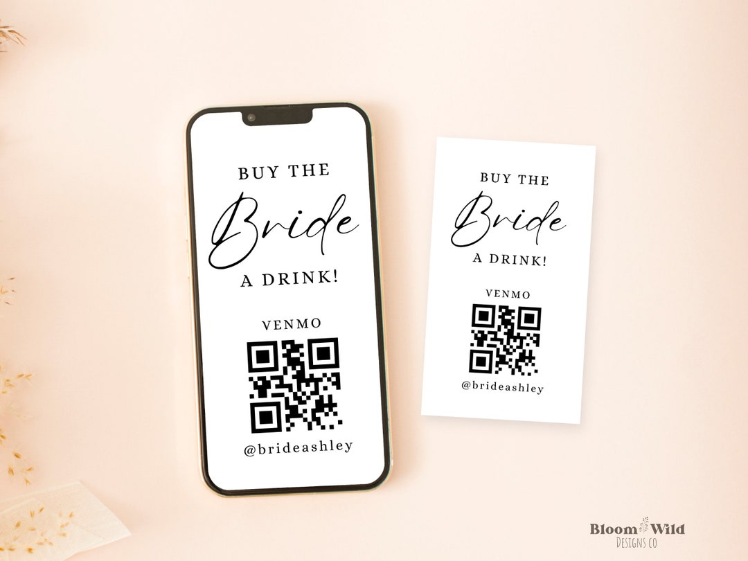 Buy the Bride A Drink Template Bride Venmo Bachelorette Card QR Code