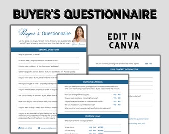 Home Buyer Questionnaire Real Estate Marketing Canva Template Etsy