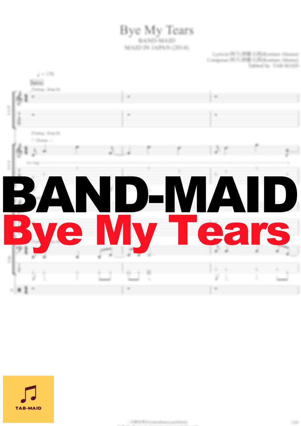 BAND MAID Bye My Tears (TAB / タブ譜 / バンドスコア) Tab 1staff by TAB MAID