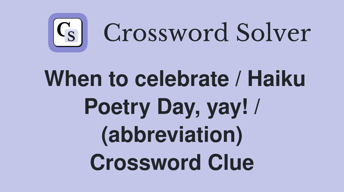 When to celebrate / Haiku Poetry Day yay / (abbreviation) Crossword