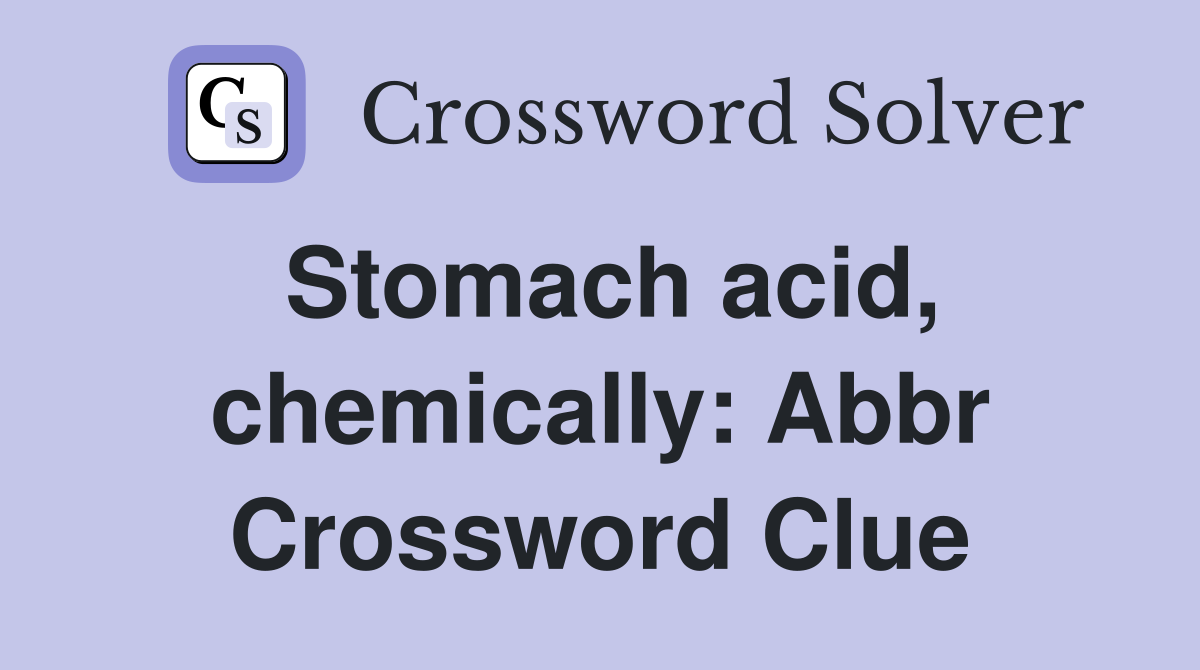 Stomach acid chemically: Abbr Crossword Clue Answers Crossword Solver