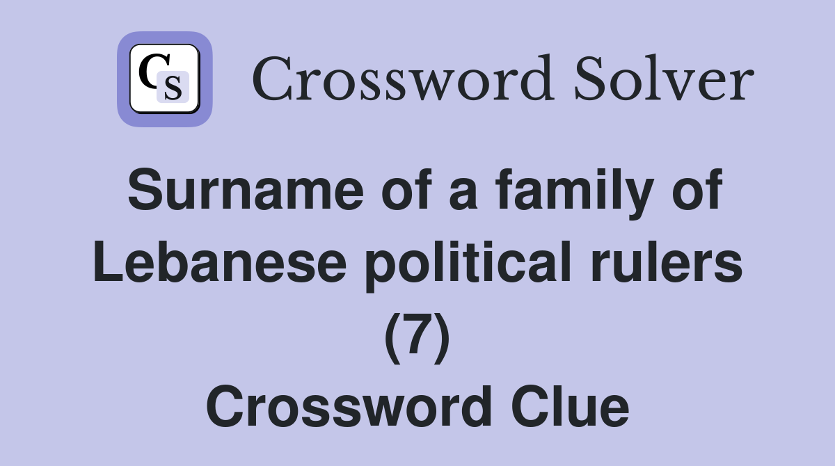 Surname of a family of Lebanese political rulers (7) Crossword Clue
