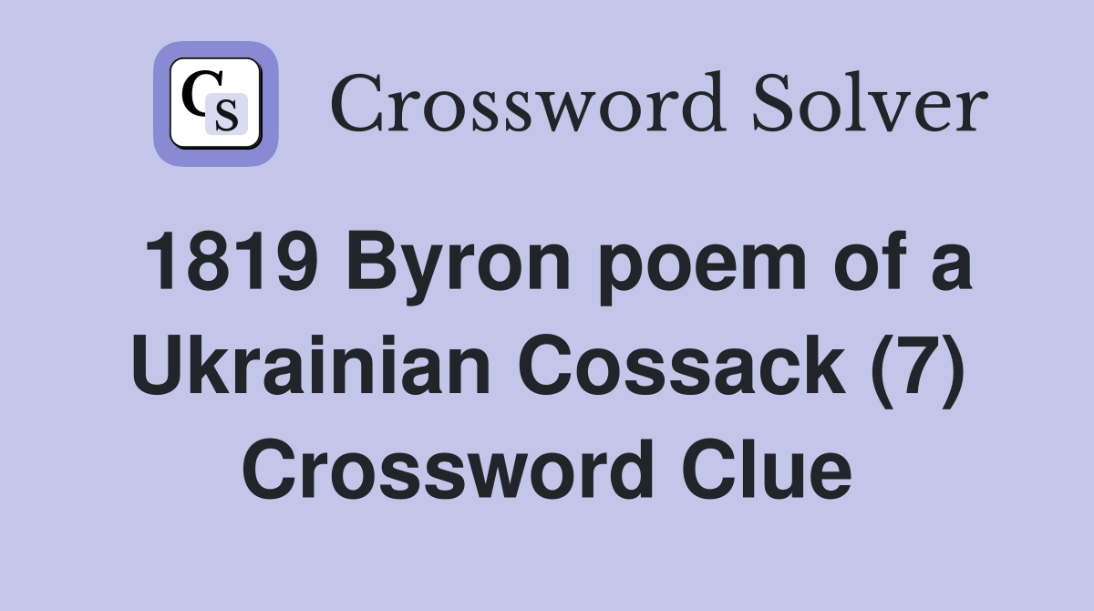 1819 Byron poem of a Ukrainian Cossack (7) Crossword Clue Answers