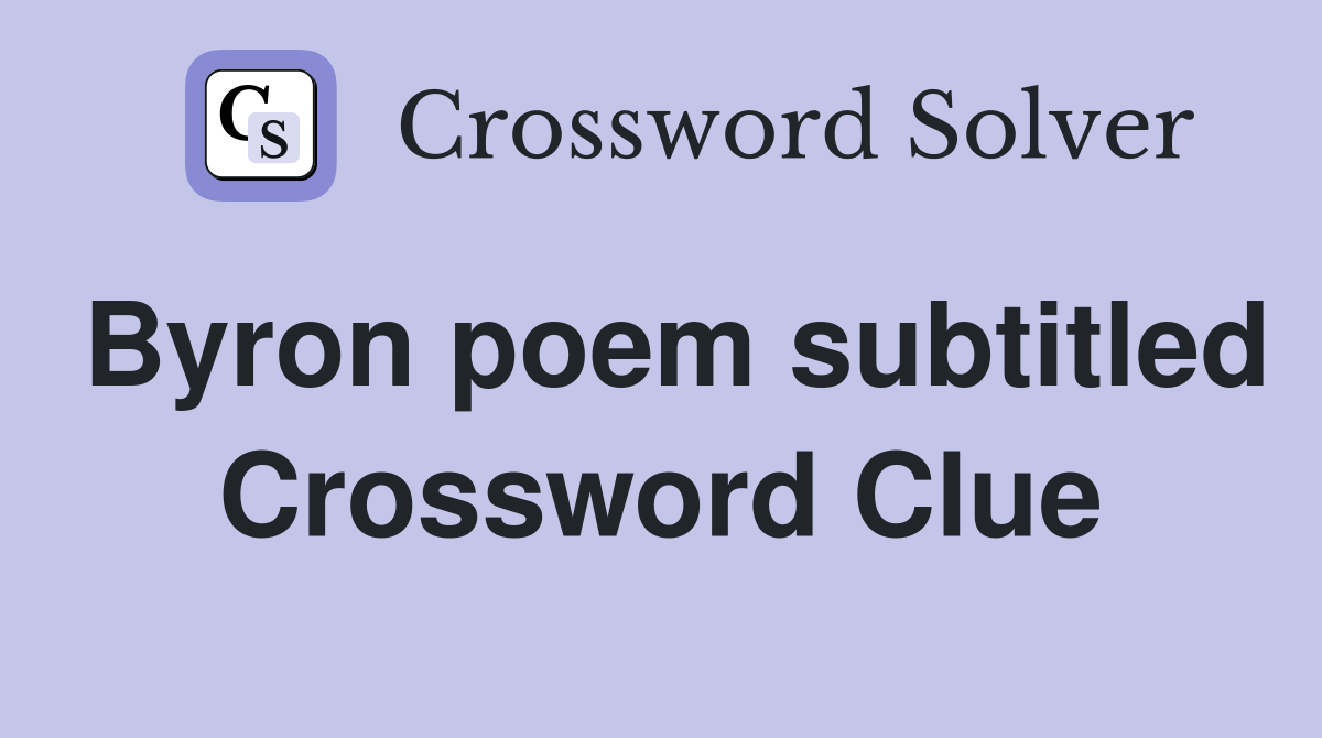 Here are some of the images for Byron Work Crossword Clue that we found in our website database.