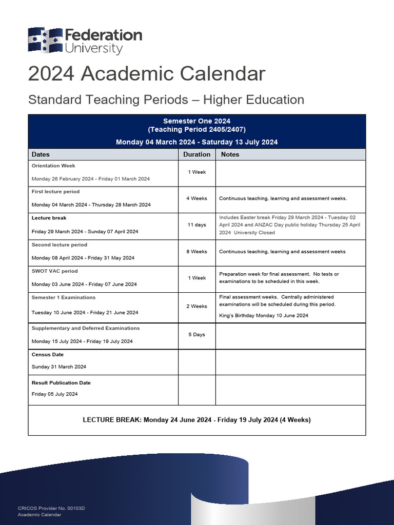 2024 Higher Education Academic Calendar PDF Academic Term