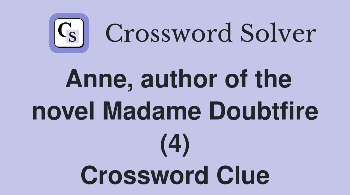Anne author of the novel Madame Doubtfire (4) Crossword Clue Answers