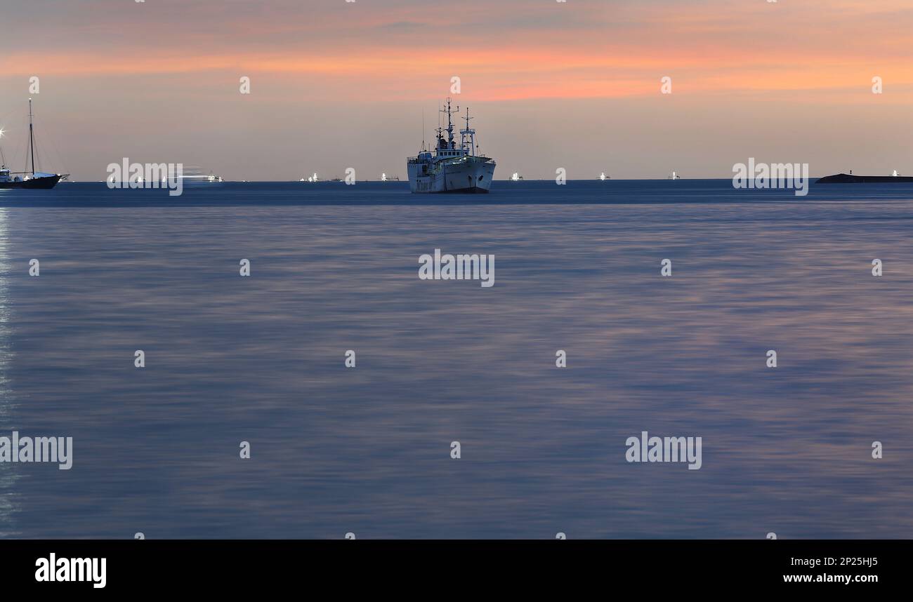 Pink Sunset Manila Bay Philippines: training ship Admiral Tomas Cloma