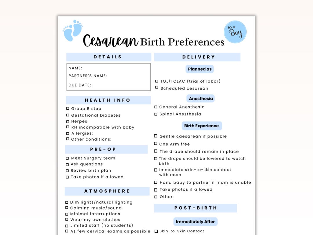 C Section Birth Plan Template: Editable Hospital Birth Preferences