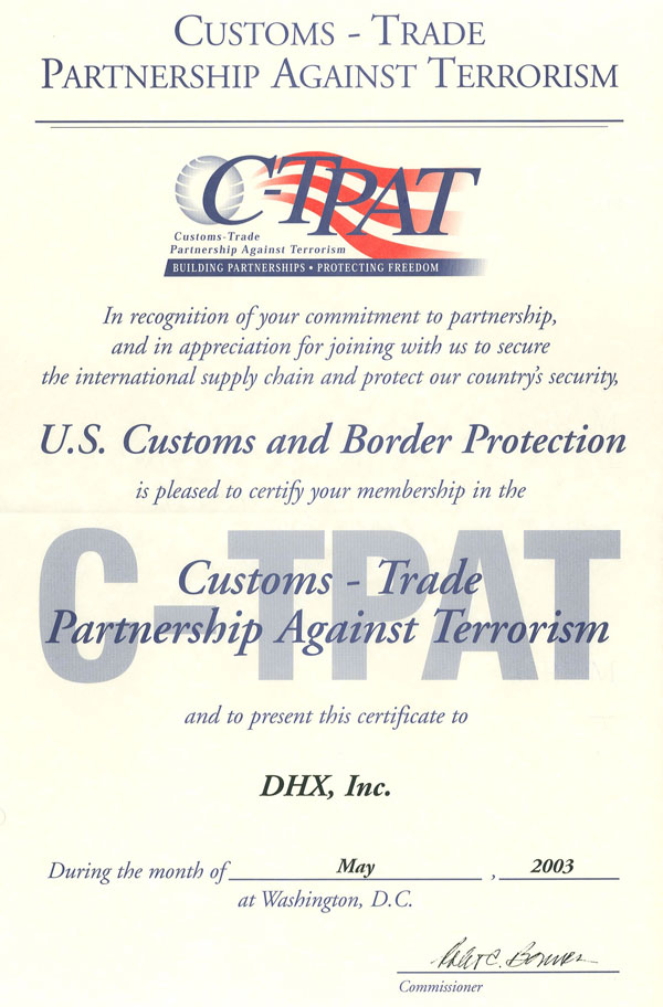 DHX Dependable Hawaiian Express Certifications: ISO C TPAT more