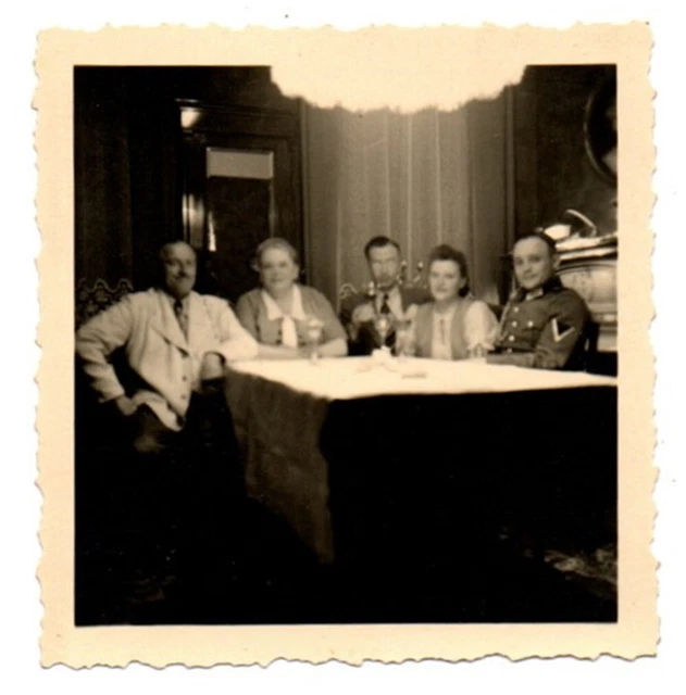 ALTES FOTO FAMILIE sitz am Tisch mit Deutschen Soldat Wehrmacht