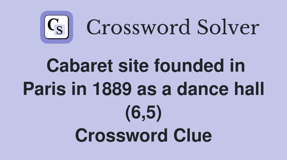 Cabaret site founded in Paris in 1889 as a dance hall (6 5) Crossword