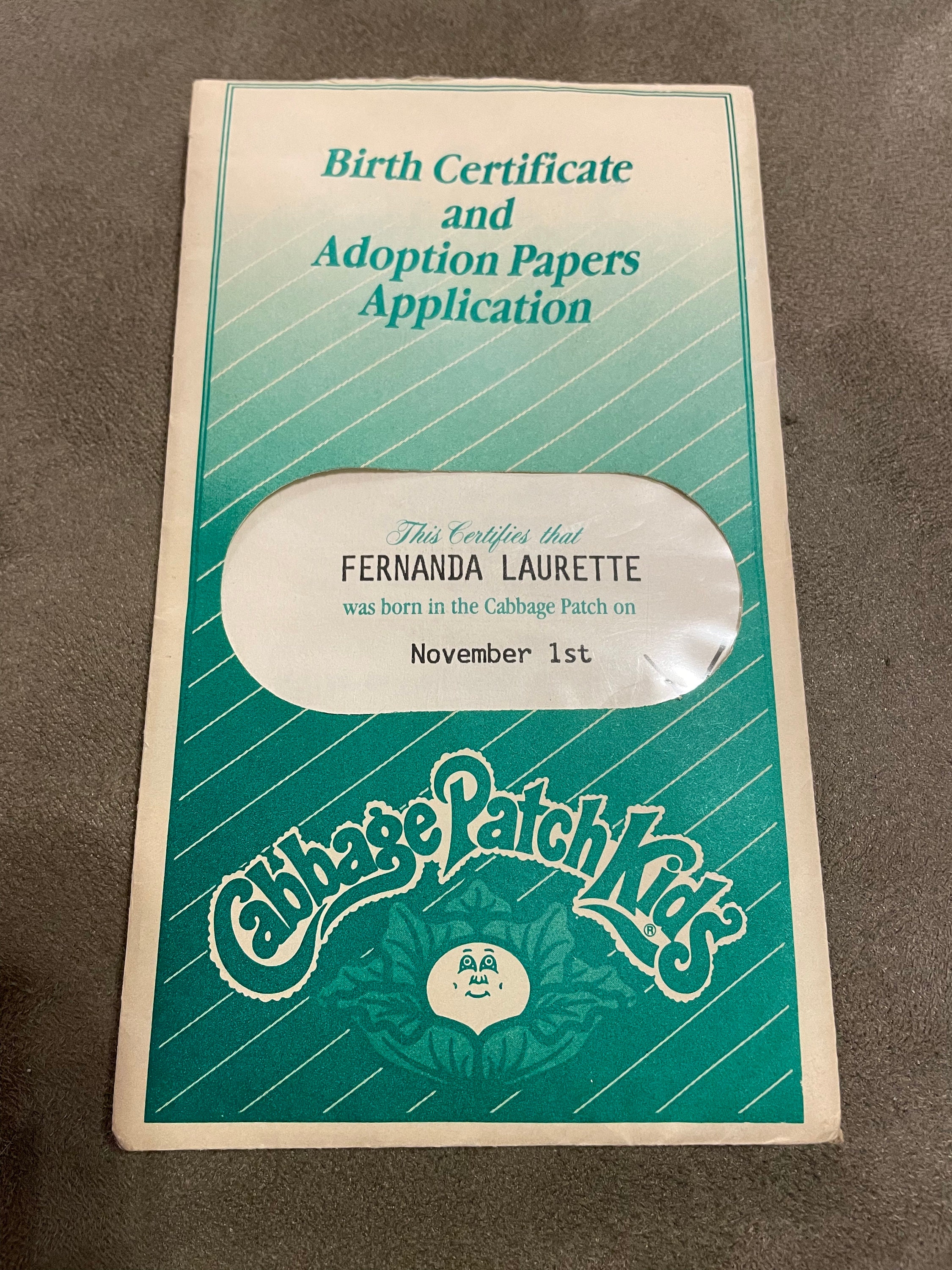 Cabbage Patch Kids Birth Certificate and Adoption Papers Morgan Julissa