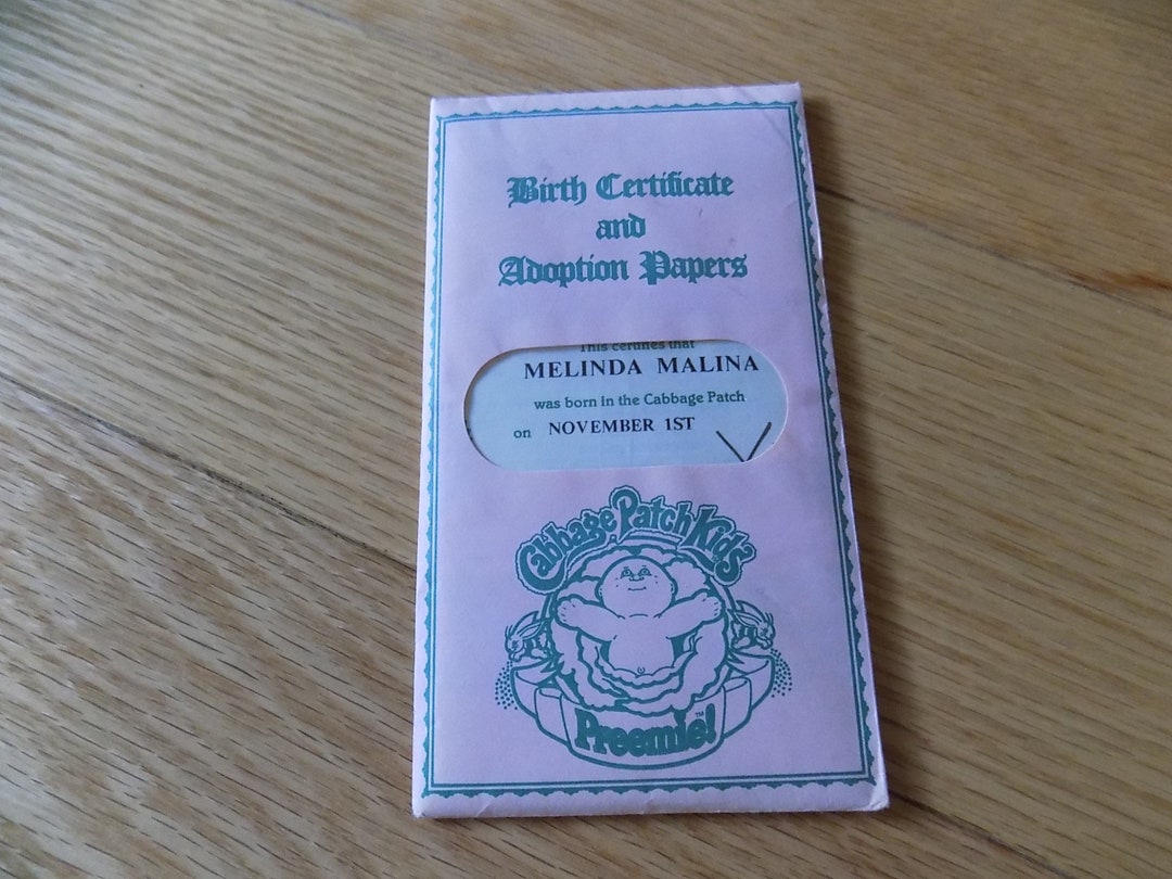 Cabbage Patch Kids Adoption Papers Birth Certificate CPK Melinda Malina