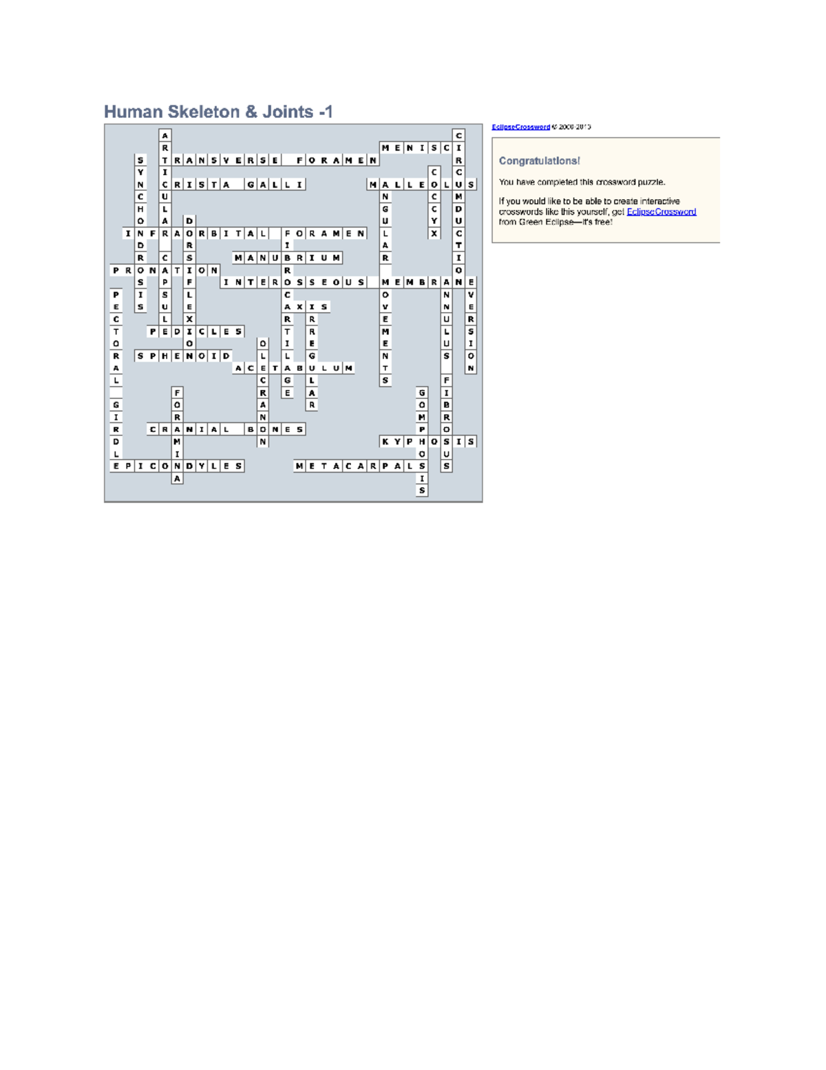 Anp crossword 2 Human Skeleton Joints EclipseCrossword A C R MENISCI
