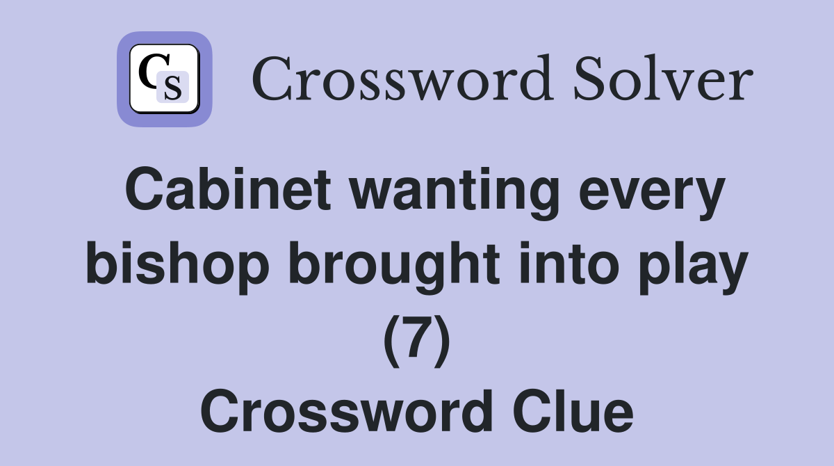 Cabinet wanting every bishop brought into play (7) Crossword Clue