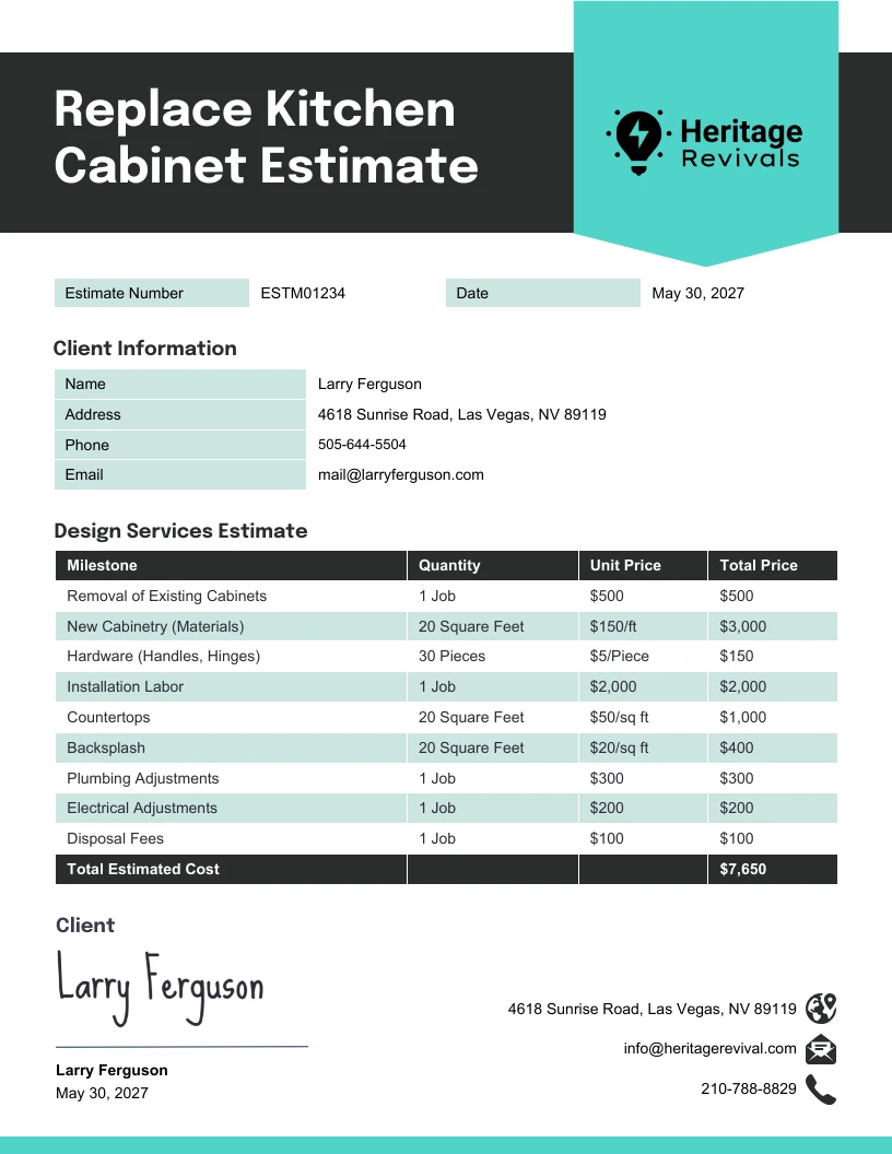 Kitchen Cabinet Estimate Template Venngage