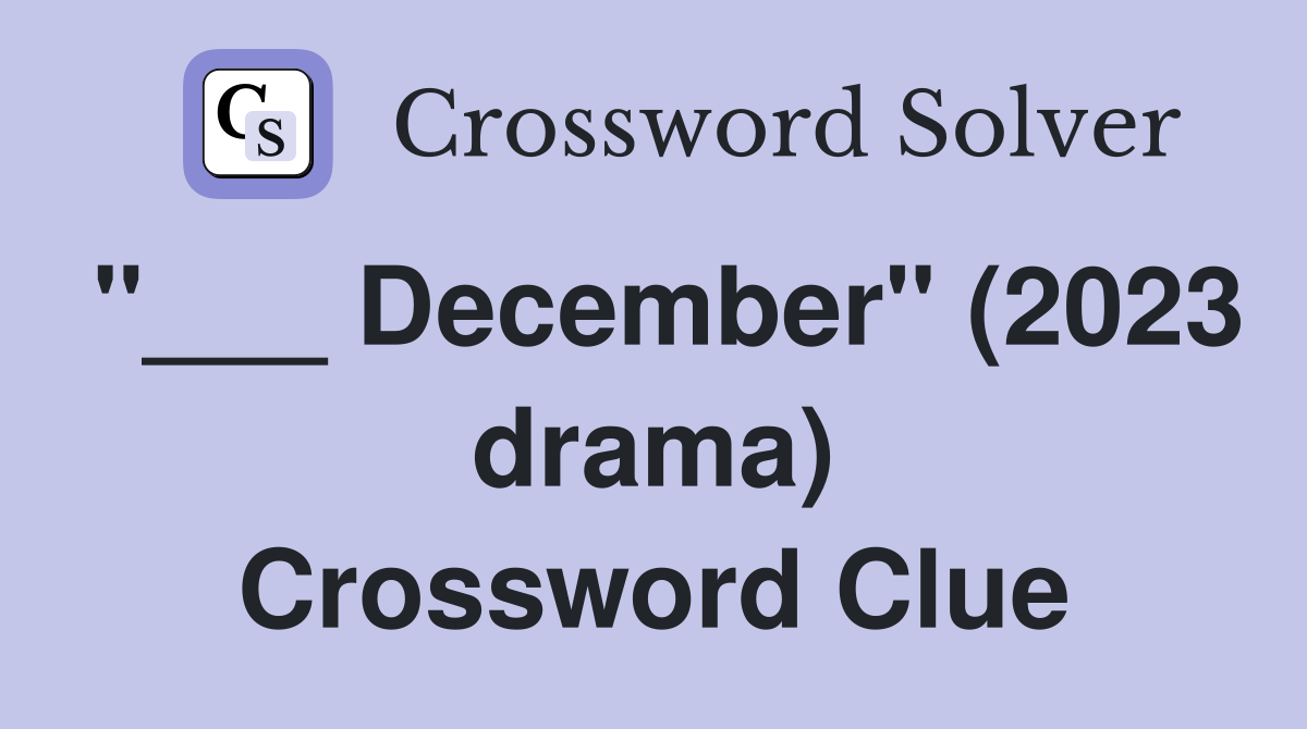 December quot (2023 drama) Crossword Clue Answers Crossword Solver
