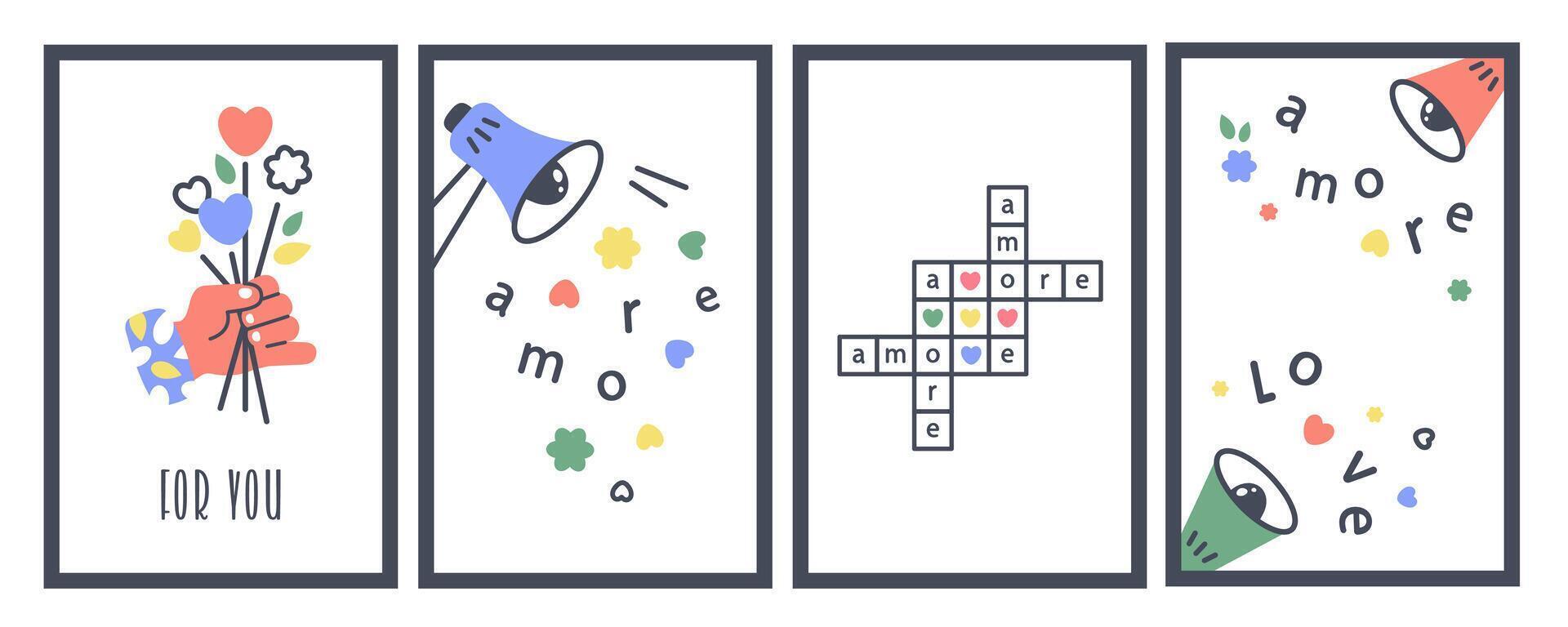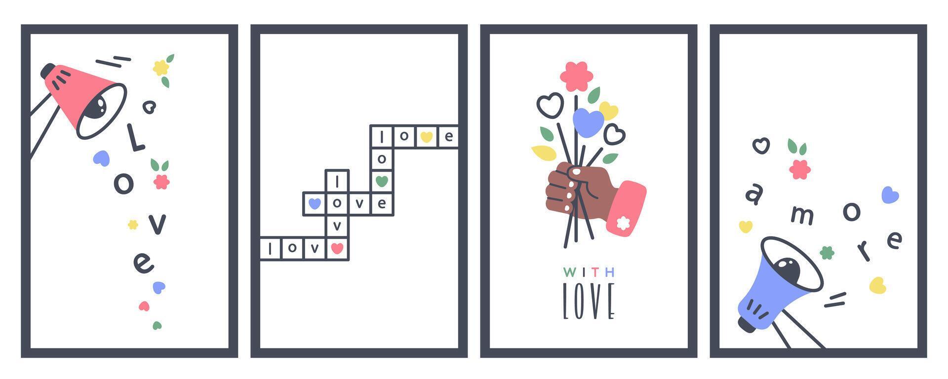 Set of Valentines cads Loudspeaker with Love message Cartoon Sound