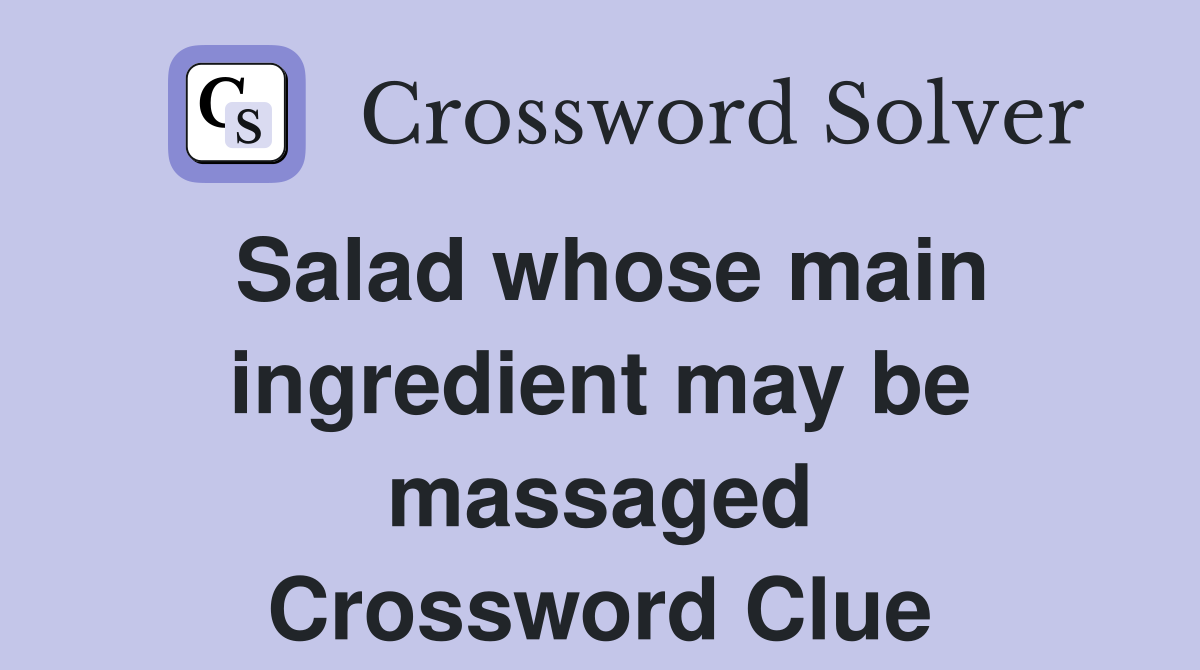 Salad whose main ingredient may be massaged Crossword Clue Answers